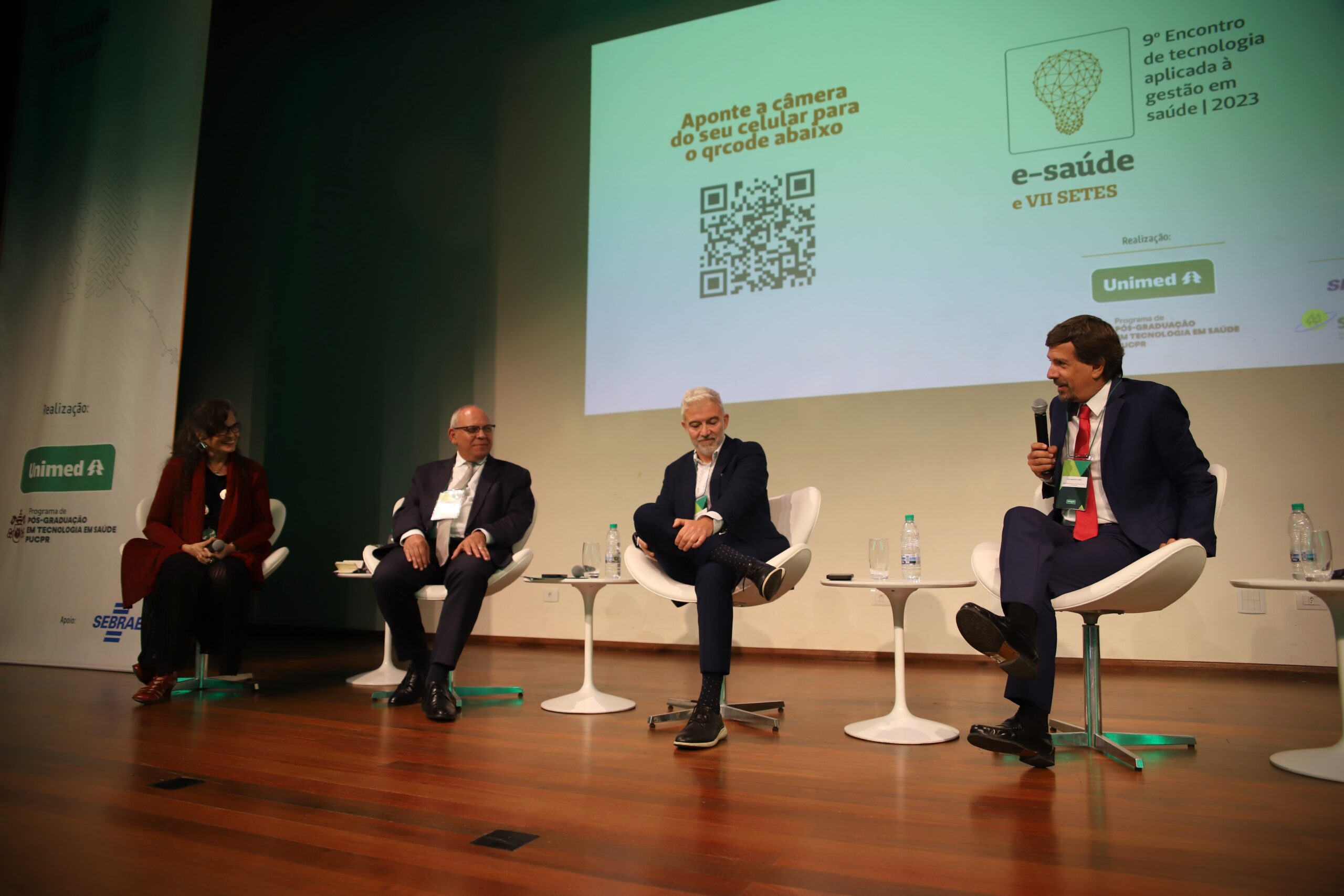 O segundo painel discutiu analytics em saúde, com a participação de Suzana Morais, da empresa de auditoria e consultoria empresarial Deloitte Brasil; Caetano Silva, instrutor e diretor da CS Technologies, focada em treinamentos em tecnologia da informação; Rafaela Raganham, analista do Núcleo de Inteligência em Saúde da Unimed Paraná; e Mauricio Cerri, superintendente de Tecnologia e Inovação na Unimed do Brasil.