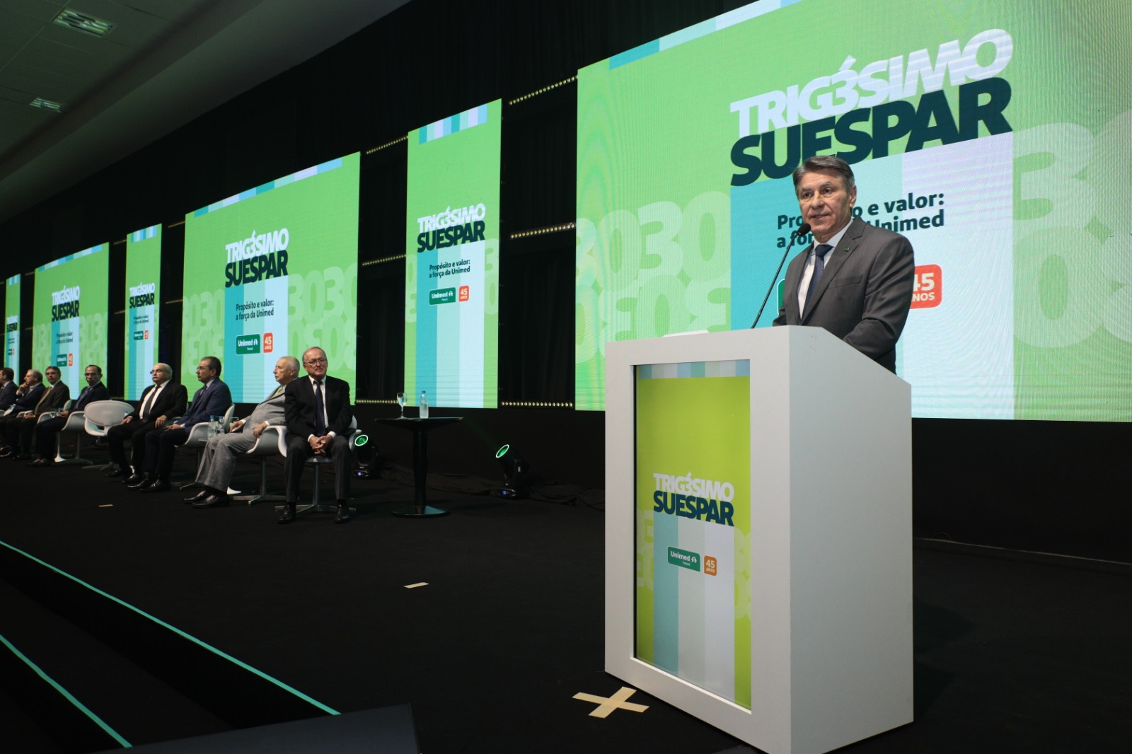 A tão esperada edição histórica do Simpósio das Unimeds do Estado do Paraná começou! A abertura da 30ª edição do Suespar, realizada na noite desta quinta-feira (22), no Recanto Cataratas Thermas Resort & Convention, em Foz do Iguaçu, reuniu autoridades do Sistema Unimed, dirigentes e colaboradores sob o mote “Propósito e valor: a força da Unimed”. Além dos 30 anos do Suespar, 2024 marca, também, os 45 anos de história da Unimed Paraná.