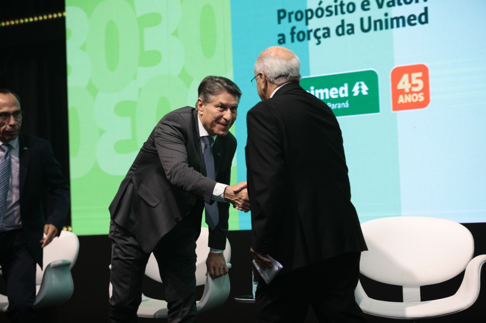 A solenidade recebeu mais de mil participantes – sendo mais de 230 pessoas de Unimeds de outros estados -, marcando a história do evento. “No Paraná, não tenho receio de dizer, somos privilegiados, em vários sentidos. Participamos de um ambiente prazeroso e exigente em meio a um grupo maduro de cooperativistas. Aqui, nós convivemos harmonicamente, debatendo em alto nível com nossas Singulares. Sejam elas de pequeno, médio ou grande porte. Tenham 10 mil ou 650 mil beneficiários. Todas trabalhando de maneira coesa, partícipe e contributiva, sempre na direção do melhor para o Sistema”, destacou o presidente da Unimed Paraná, Paulo Faria.