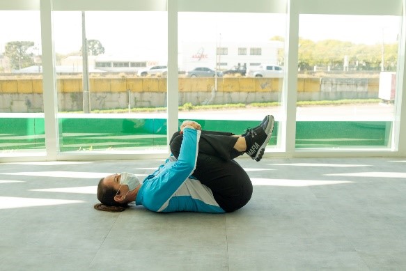 E: Abraçar um joelho de cada vez, mantendo o outro estendido, por 30 segundos. Em seguida, abraçar os dois joelhos, junto e manter, também, por 30 segundos. Pode repetir três vezes. Esse alongamento é simples, mas importante para a região lombar…