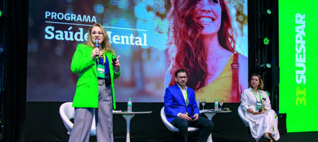 Compartilhando dessa visão, a psicóloga Patrícia Olivo Poiani apresentou as iniciativas da Unimed Paraná. Para ela, “a saúde mental é uma conquista diária”, e a Federação apoia os colaboradores nesta busca com oficinas e grupos de escuta ativa. “Não é só nosso crachá que está lá, mas cada pessoa que trabalha para falar o que sente, o que pensa.”