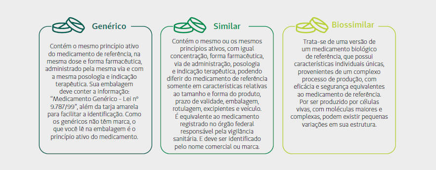 O desenvolvimento de tecnologias e pesquisas científicas permite uma evolução constante na descoberta e no aprimoramento de soluções farmacêuticas para problemas de saúde diversos. Quando uma empresa lança um medicamento novo, ela detém os direitos de comercialização por determinado tempo. Quando a patente expira, outros laboratórios também podem criar e vender produtos próprios com base nos originais. Assim, chegamos à gama de opções de medicamentos de referência, genéricos, similares e biossimilares.