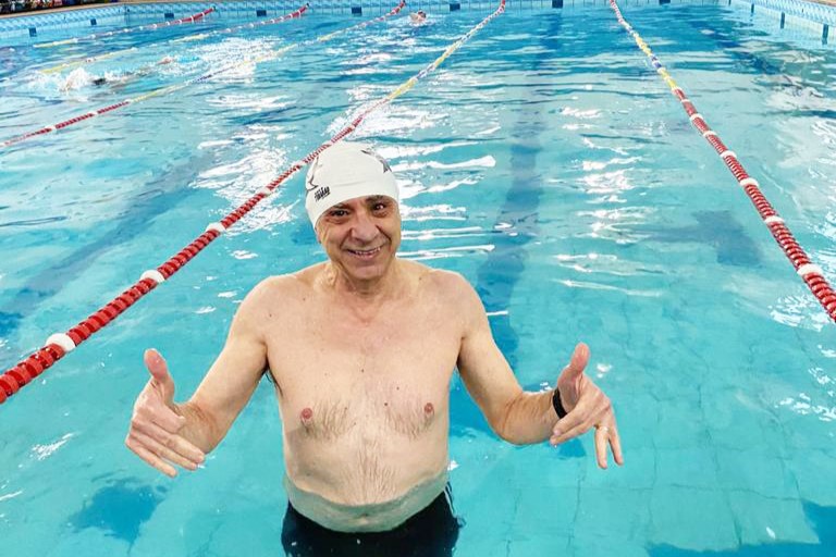 No início, a natação era apenas uma atividade descompromissada, mas gradualmente se transformou em algo prazeroso. Os benefícios foram perceptíveis pelo médico desde o início e, no decorrer do tempo, os efeitos positivos foram aumentando, impulsionando ainda mais o entusiasmo pelo esporte aquático.