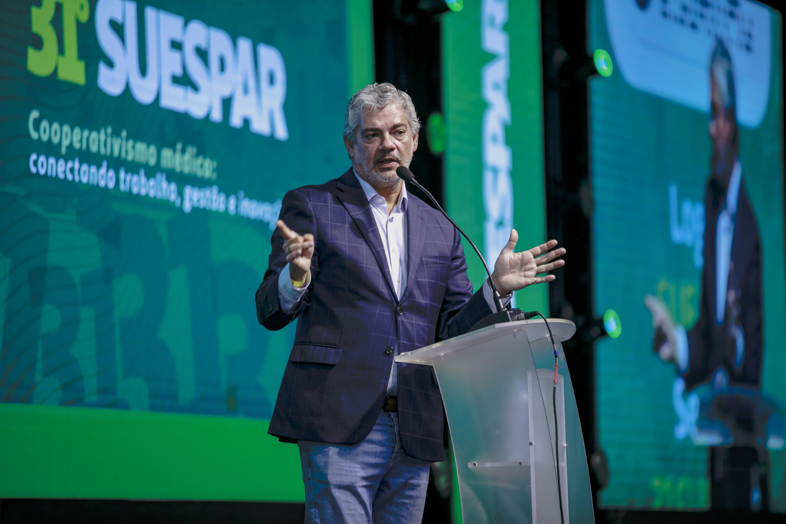 Uma decisão sobre tarifas, tomada a milhares de quilômetros de distância, pode alterar a dinâmica de todo um país — com uma série de mudanças que pode desembocar, inclusive, no poder de compra para contratos de planos de saúde no Paraná. A observação, feita por Alexandre Bley, diretor Administrativo e Financeiro da Unimed Paraná, e Durval Francisco dos Santos Filho, diretor de Mercado e Intercâmbio, mediadores da plenária, revela como as fronteiras entre a geopolítica global e os negócios locais estão se dissolvendo. Para decifrar este cenário, o convidado foi o economista Marcos Prado Troyjo, Distinguished Fellow do Insead (Instituto Europeu de Administração de Empresas). Ele defende: estamos nos “5 minutos do primeiro tempo” de uma era que trará dificuldades para a grande maioria dos 193 países, mas oportunidades imensas para uma seleta minoria.