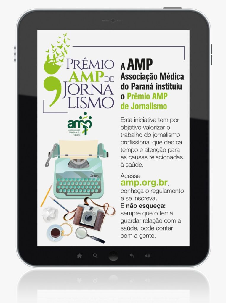 A Associação Médica do Paraná (AMP) está promovendo o Prêmio AMP de Jornalismo 2022. O objetivo é reconhecer e premiar trabalhos jornalísticos produzidos no Brasil e veiculados em jornais impressos, revistas e veículos eletrônicos de comunicação com sede no país. “Os desafios da saúde e o papel do profissional médico” foi o tema definido para os trabalhos a serem inscritos. As inscrições podem ser feitas até o dia 5 de outubro, mediante o preenchimento de uma ficha disponível no site da AMP (https://www.amp.org.br/web/premio).